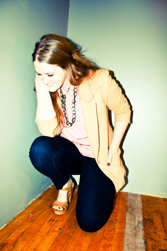 Black Skinnies: NY&C I Camel Blazer: Thrift I Pink Blouse: GMA I Platforms: Target
